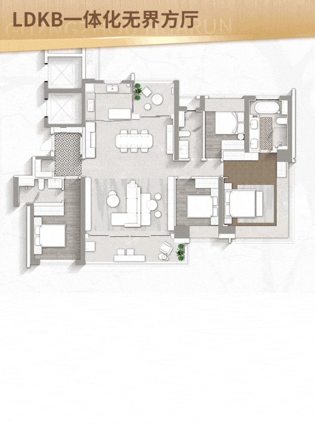 想象一下如许的糊口场景:正在厨房预备晚餐时,抬眼就能看到正在客堂玩耍的孩子,随时能插手家人的聊天;伴侣来了,这个空间秒变派对现场,这么大的宽阔空间,怎样玩都不显狭隘。更妙的是洄逛动线,从厨房到餐厅,从客堂到阳台,走起来非常顺畅,让整个家的流动感出格强。该户型还配备了南北双阳台,一侧静享内部园林的静谧,一侧俯瞰CBD的富贵,糊口阳台采用矫捷的双推拉门设想,能够打形成阳光茶馆、书房等。