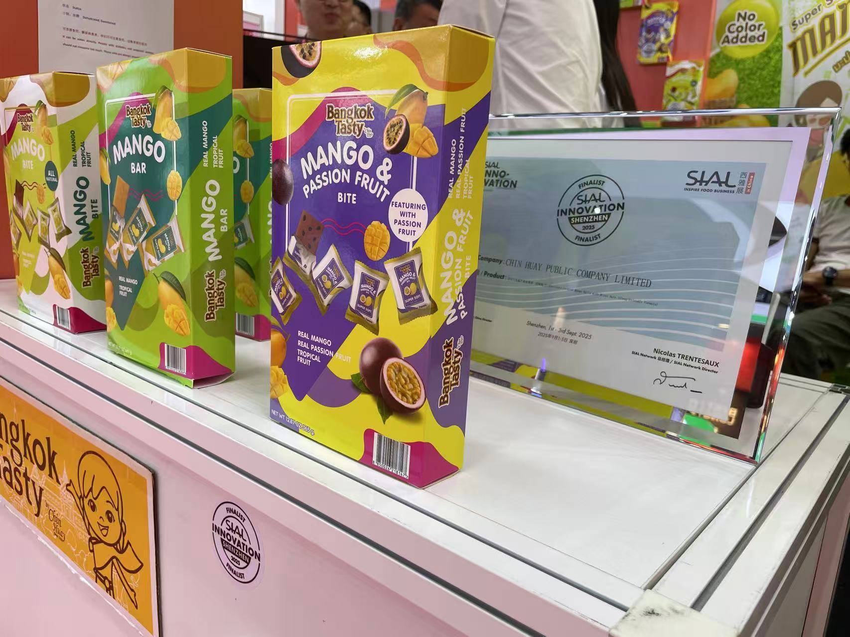 9月初,正在2025 SIAL西雅国际食物展(深圳)举办同期,第24届SIAL立异大赛获奖榜单正式发布。CHIN HUAY PUBLIC COMPANY LIMITED选送的产物“Chin Hauy”品牌芒果糯米饭脆片和“Bangkok Tasty”品牌巧克力包裹芒果坚果球 (帮眠配方)跻身TOP10,均荣获立异大奖。